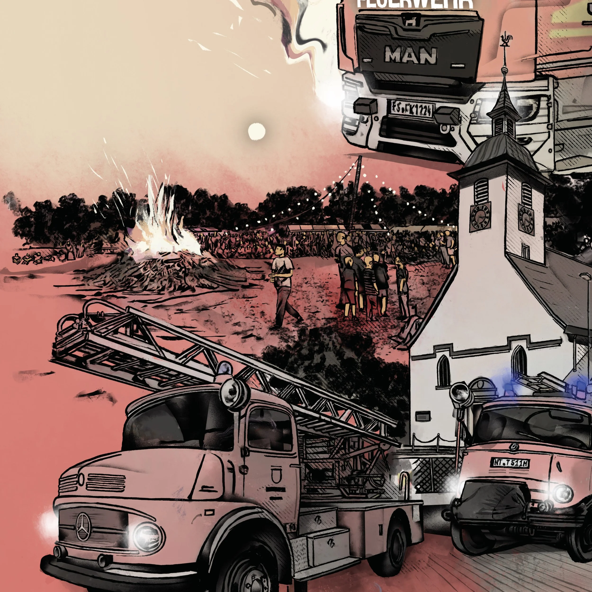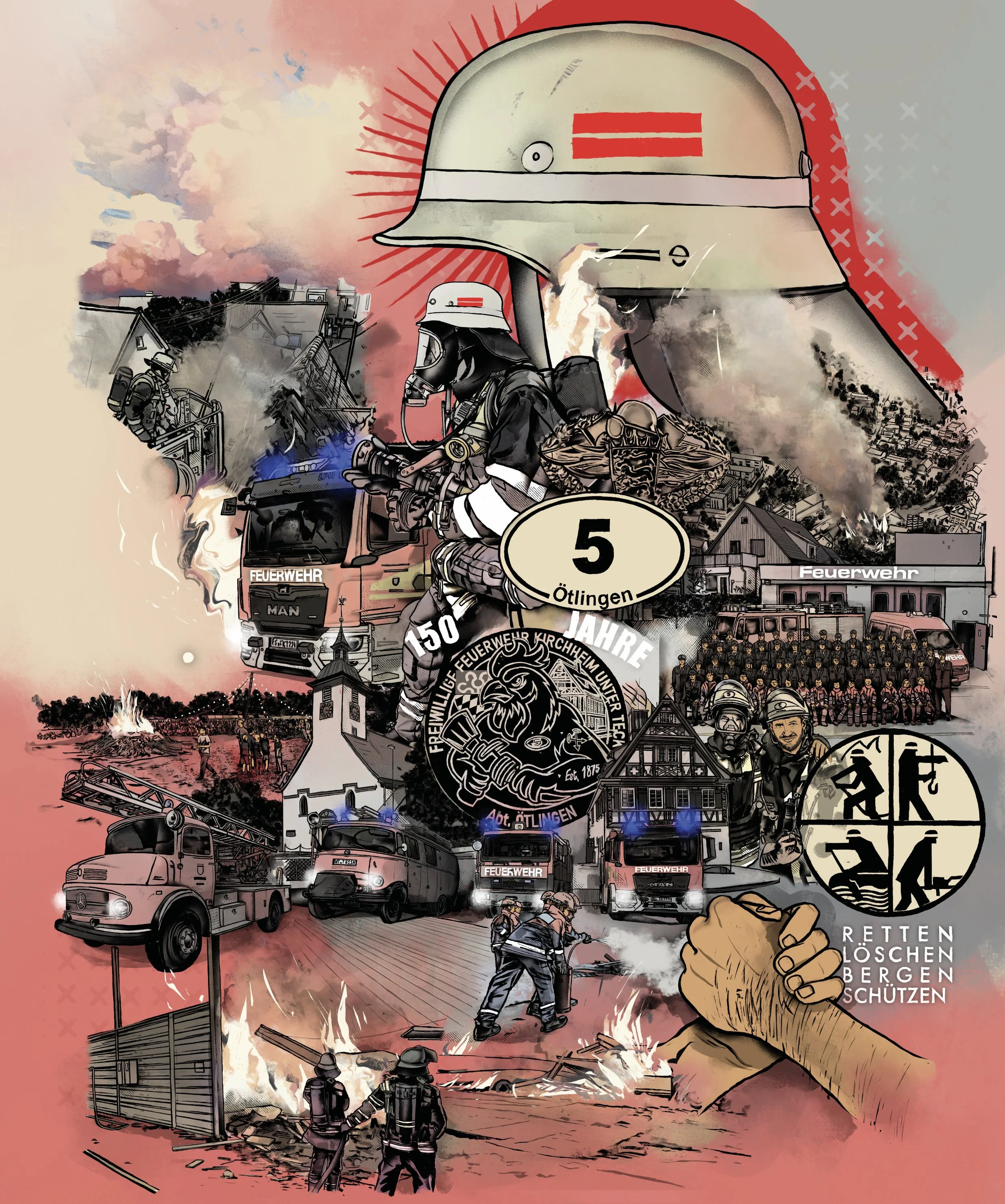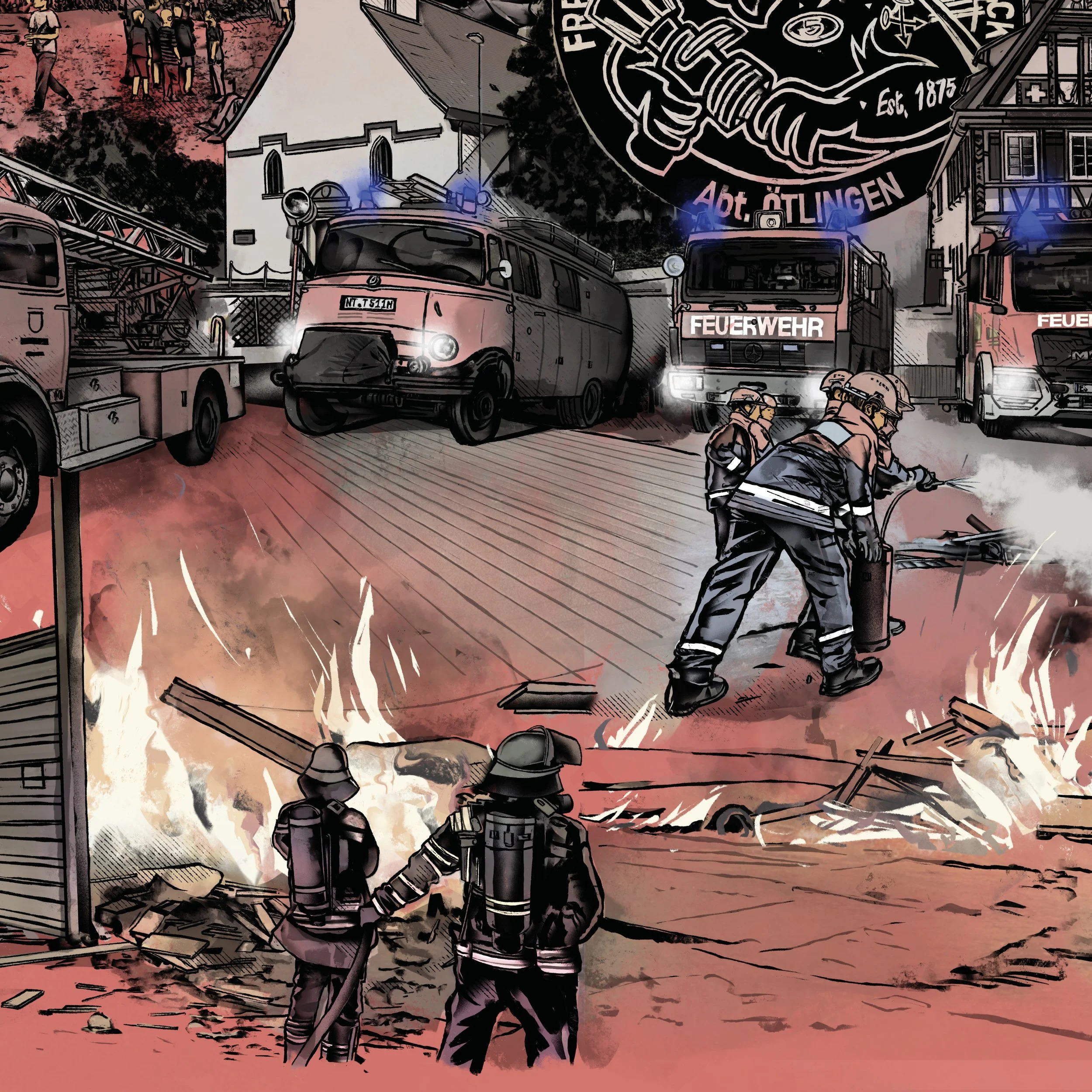 Here’s a drawing I made for the fire department in Ötlingen—a small town near Stuttgart, Germany—to celebrate their 150th anniversary! I really enjoyed making it—best regards!