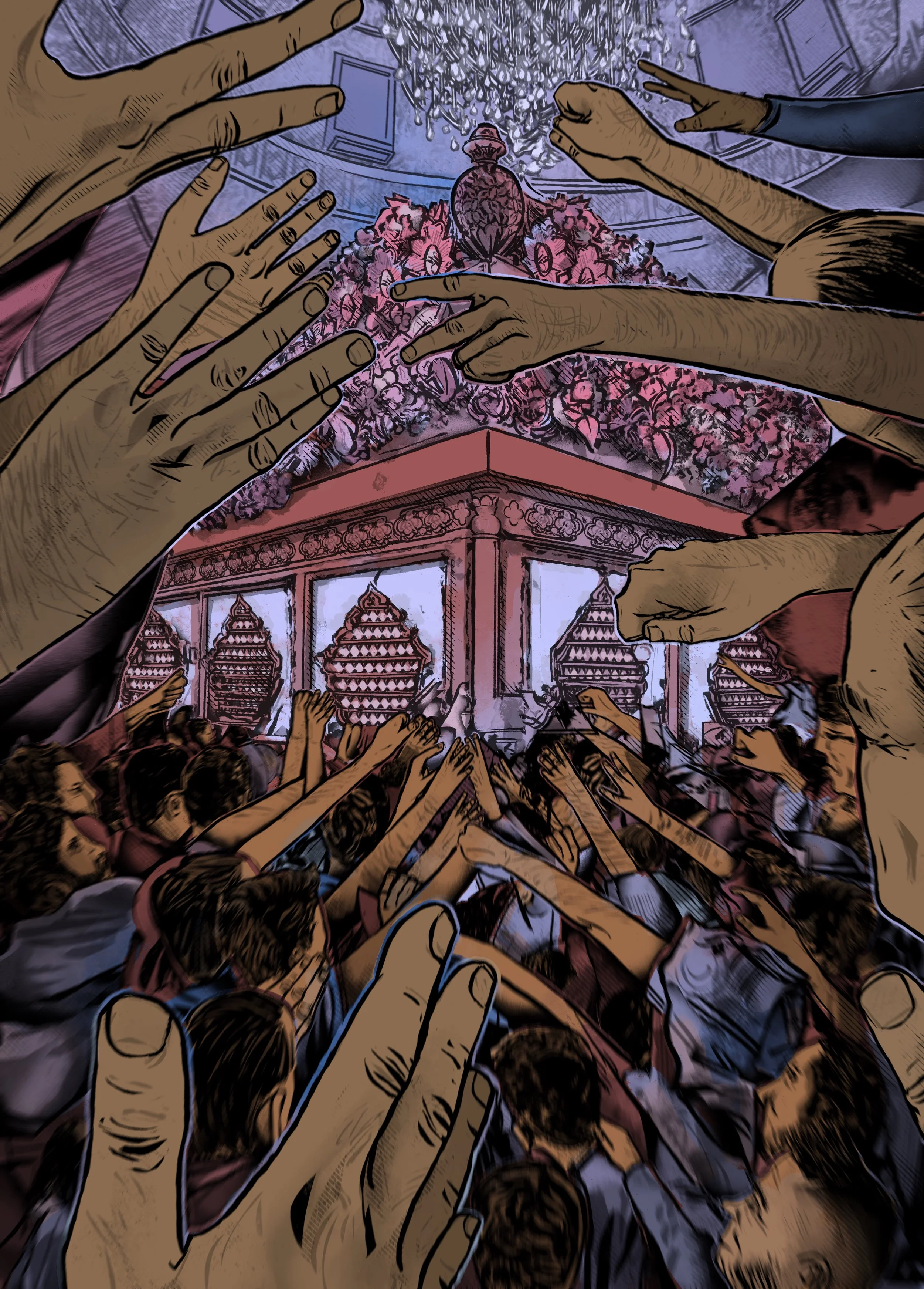 For Swiss Reportagen Mag, I was once again able to illustrate two illustrations for a great text by Teseo La Marca. The author describes how he converts to Shia Islam for love - he takes part in a pilgrimage to Karbala, the most important Shia place of pilgrimage. According to the Imam Abbas shrine, 23 million people came within a few days last year. Most of them walk the last 80 kilometers through the desert - exciting and highly interesting!