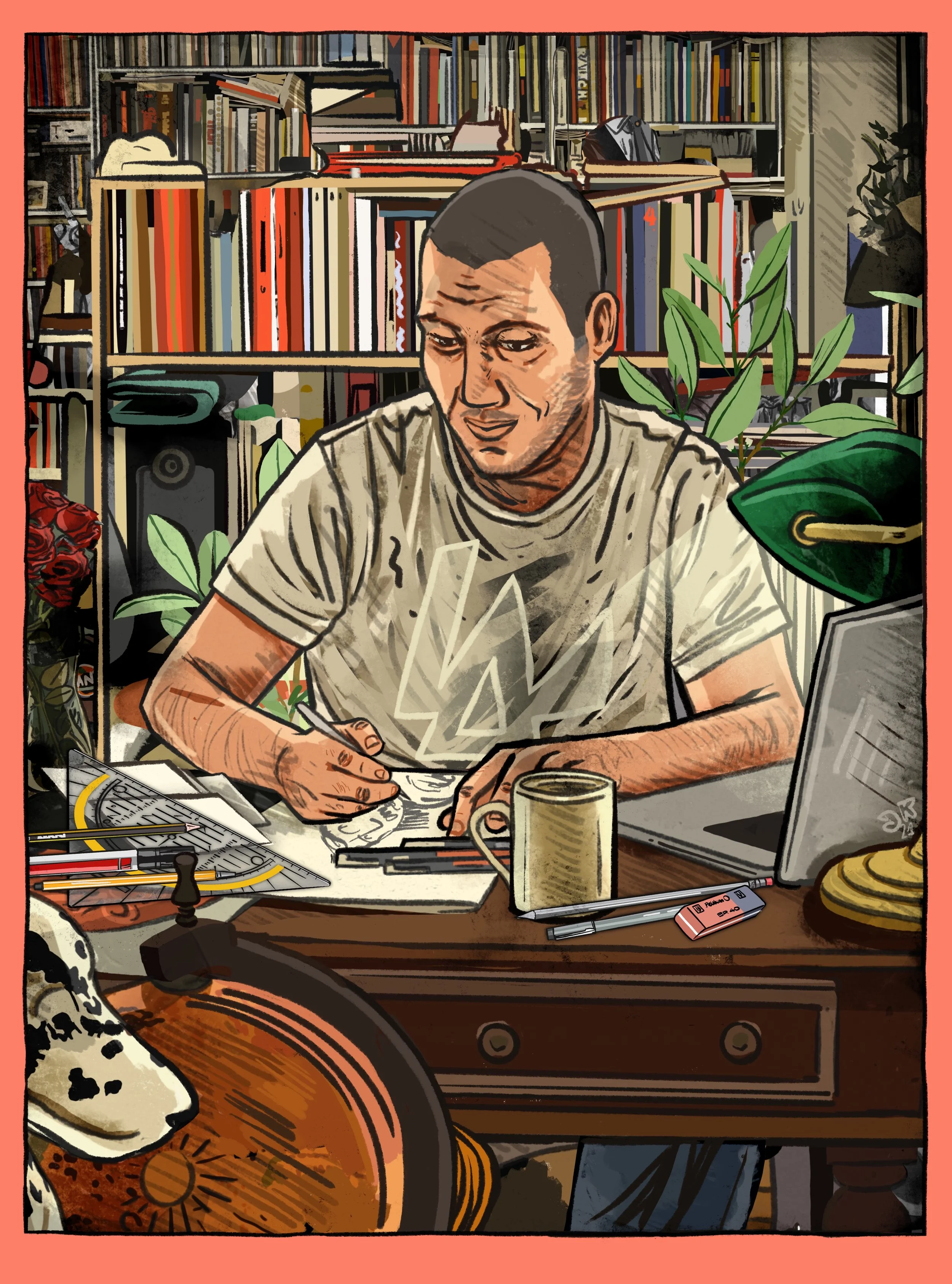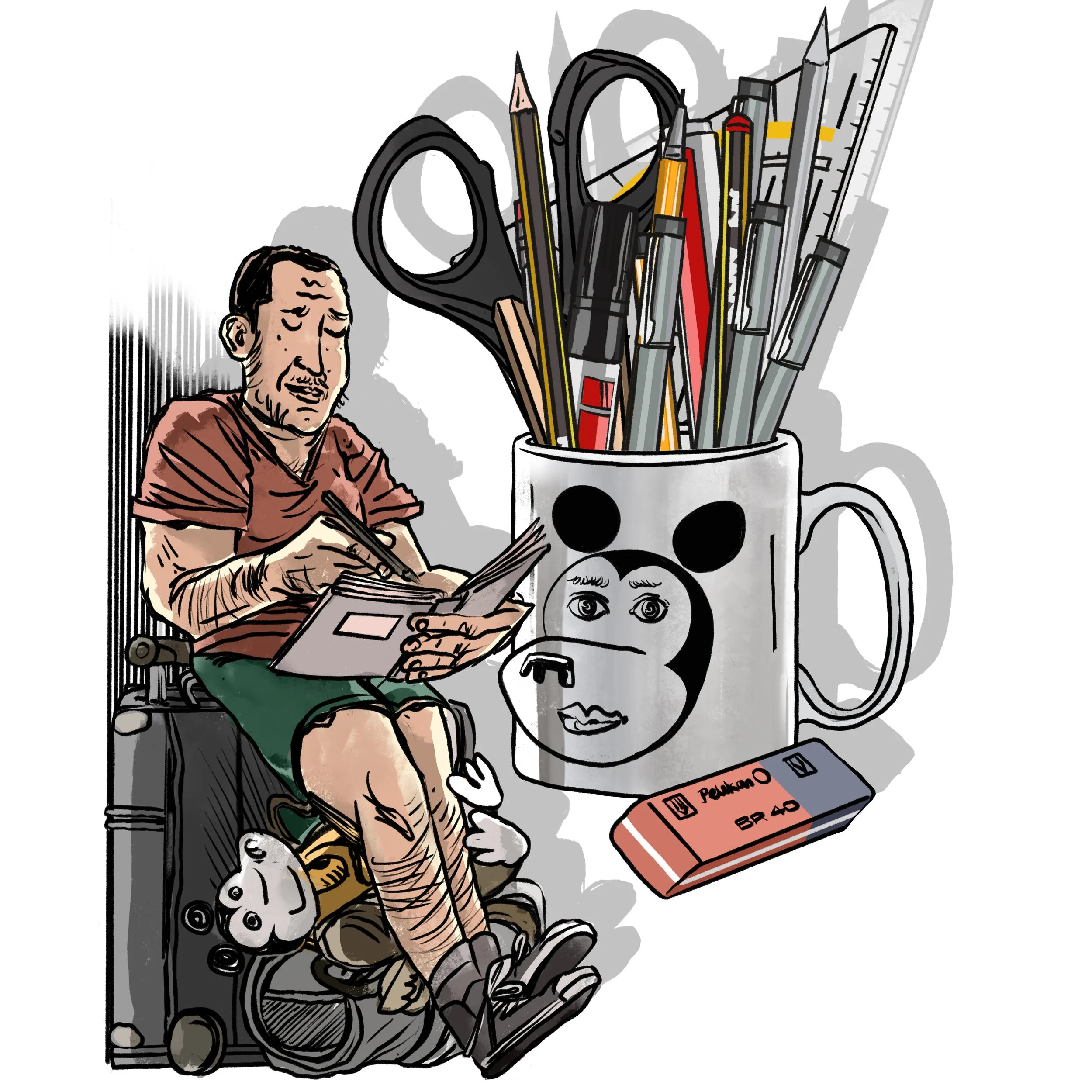 JS Magazine - "I thought I had a clue" (gambling addiction) - lead story, analog drawing, digitally colored — February 2021