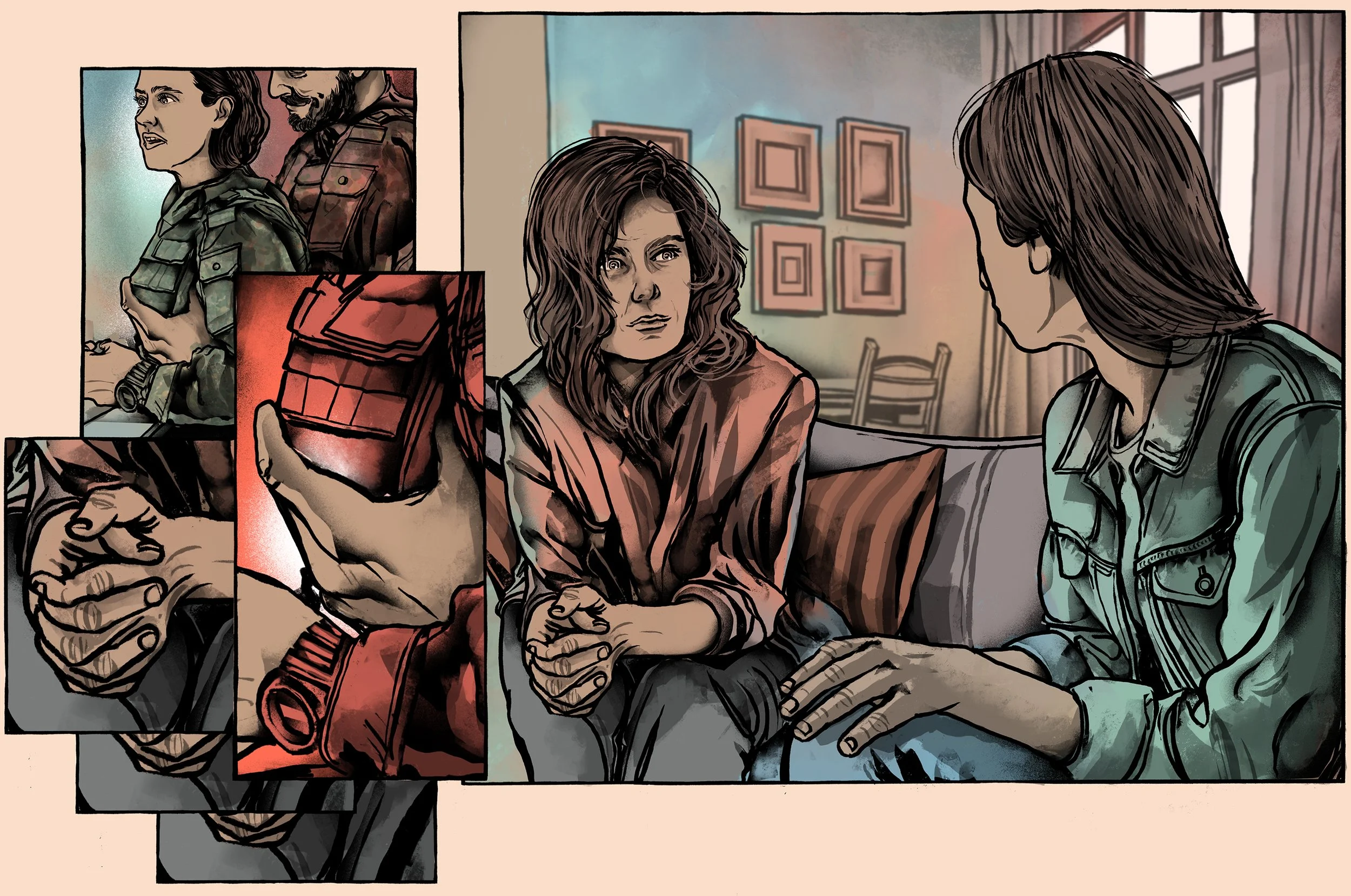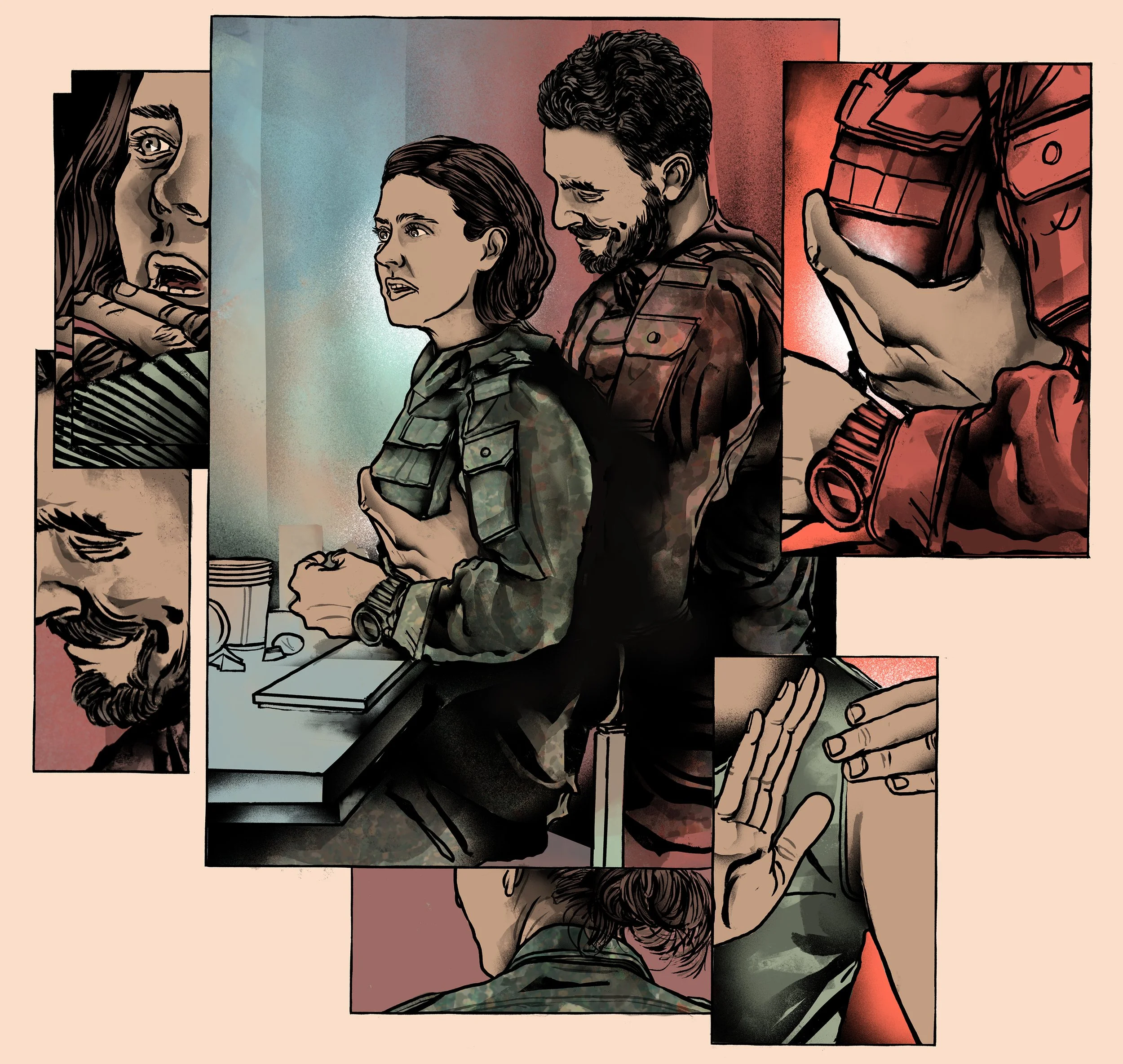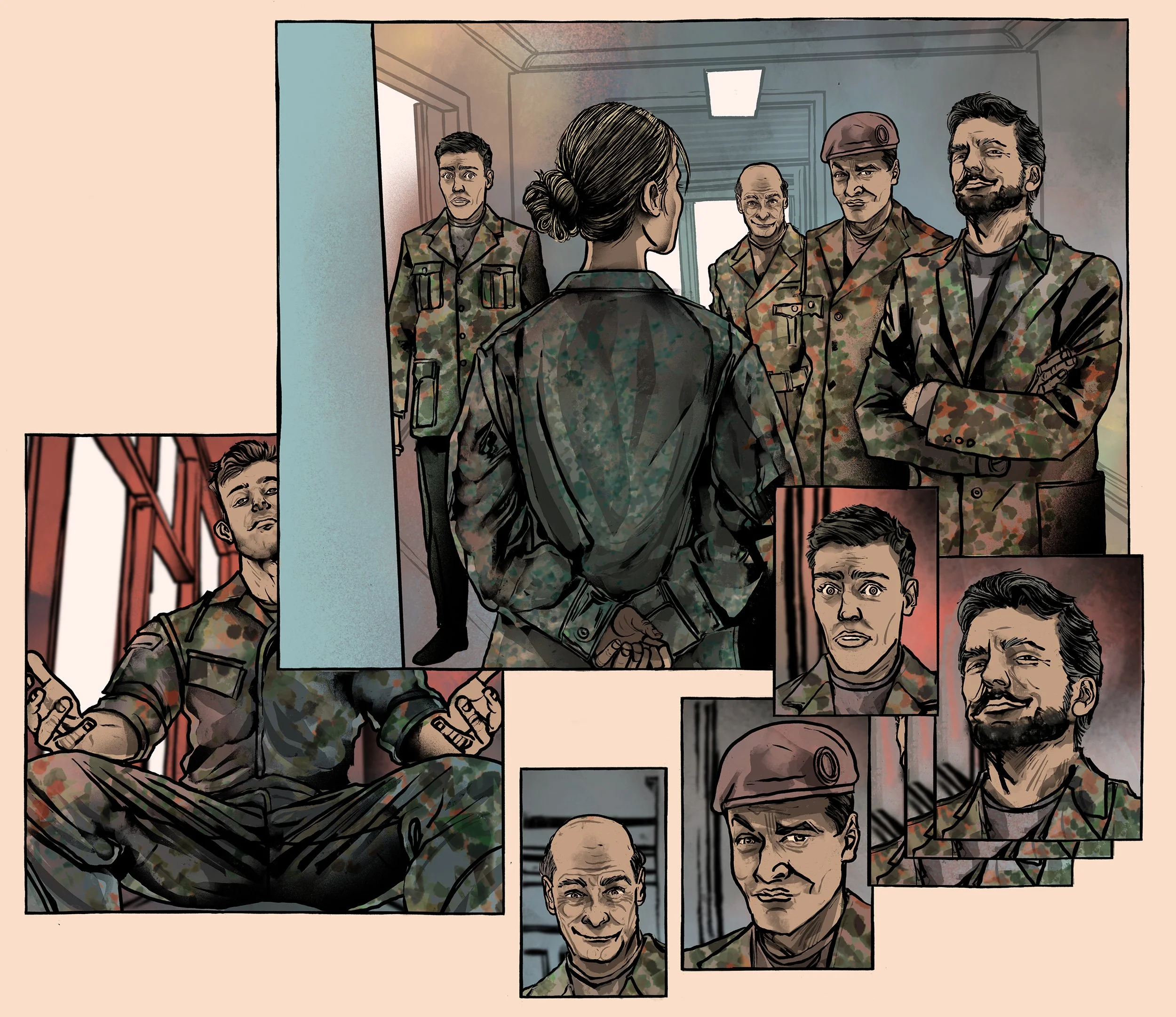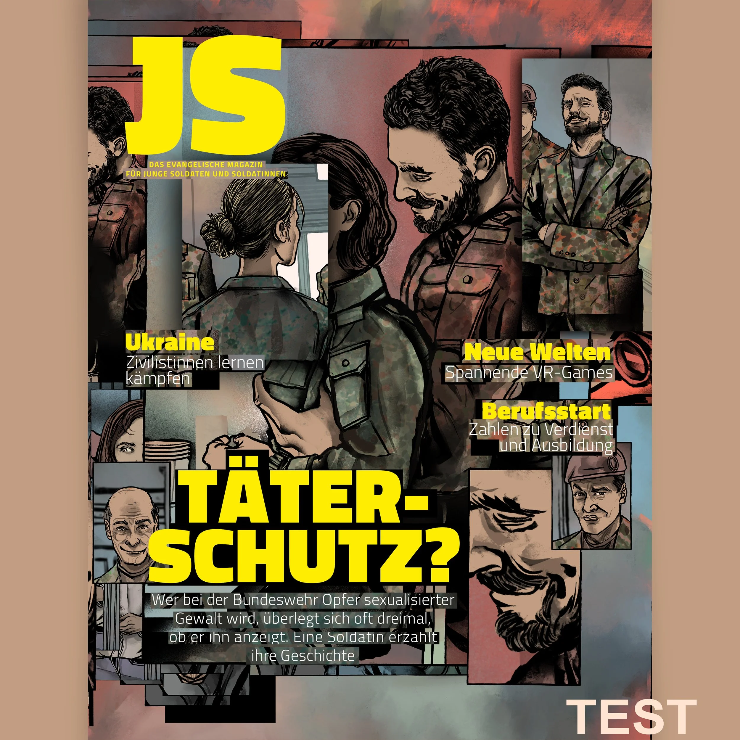 Für das JS Magazin durfte ich Illustrationen zu einem Text beisteuern, in dem Soldatinnen von Sexismus und sexuellen Übergriffen in der Bundeswehr berichten - Demütigungen, Drangsalierungen, Druck. Wir haben uns dafür entschieden, es durchaus dunkel und düster, die Panels sollen die fragment- und sprunghaften Erinnerungen des Übergriffs visualisieren. Ich danke der AD vielmals für die Möglichkeit und die tolle Zusammenarbeit.